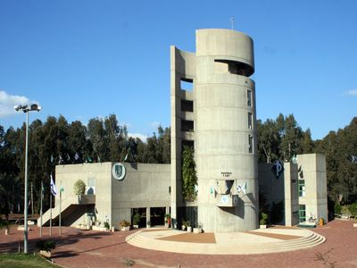The Nahal memorial features architectural elements including a tower resembling a water structure, alongside an amphitheater and lecture spaces for gatherings.