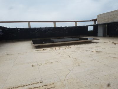 The facility includes 4D projections of Jerusalem and a detailed stone map tracking the paths of Abraham and Moses across the ancient landscapes.