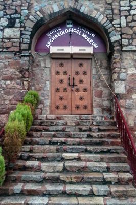 The Qila-i-Kuhna Mosque within the fort complex displays early Mughal architectural elements through its pointed arches, limestone domes, and red sandstone walls.