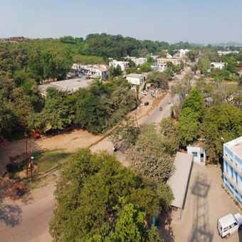 Chhatarpur is the district capital located in central Madhya Pradesh and sits in a flat terrain. The town comprises administrative buildings, markets, and residential areas typical of a district center in central India.