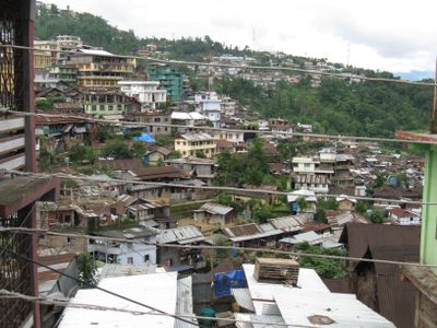 Kohima extends across the foothills of the Japfü section at an elevation of 1,444 meters, featuring mountains, valleys, and green landscapes throughout its 20 square kilometers.