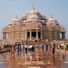 Akshardham is a temple compound in the eastern part of Delhi that includes several prayer halls, gardens and exhibition spaces. The central main building displays intricate stone carvings on walls, columns and domes depicting deities and mythological scenes.