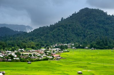 The Ziro Valley stretches across gentle hills at 1700 meters elevation, containing terraced rice fields, bamboo groves, and pine forest trails.
