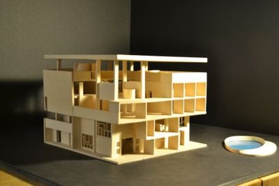 Le Corbusier integrated elements of traditional Ahmedabad architecture into the design, including a double-height living room that reflects local residential patterns.