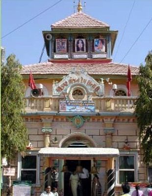 Shri Hanuman Mandir is a Hindu temple complex in Barwala Taluka in the Indian state of Gujarat featuring a monumental statue of the deity that stands 54 feet (16.5 meters) tall. The figure is made of steel and red sandstone and rises above the flat surrounding land, remaining visible from far away.