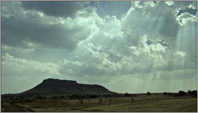 The fort structure occupies a flat plateau measuring 300 square yards, rising 600 feet above the surrounding plains in Maharashtra state.
