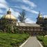 The granite church features extensive windows, a central dome, and rock sculptures depicting biblical events along its entrance pathway.