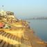 The stone construction spans along the banks of the Narmada River, providing broad steps that descend into the sacred waters at Narmadapuram.