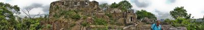 The fort structure includes broken stone steps, scattered walls, and remnants that provide insights into military engineering from the colonial period.