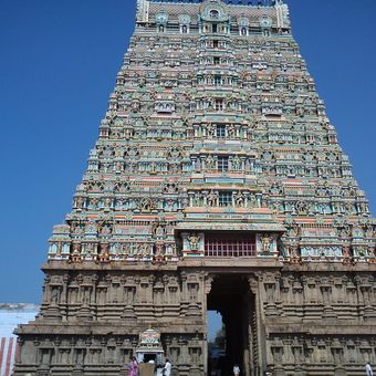 The temple features a 180-foot tower, multiple shrines, and a granite wall that encircles the complex containing the main sanctum dedicated to Lord Shiva.