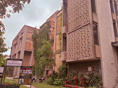 Triveni Kala Sangam contains four art galleries, an outdoor theatre, a chamber theatre, and an open-air sculpture gallery within its multi-level complex.