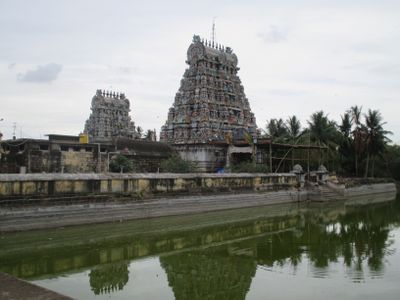 The Agnipureeswarar Temple features a five-tiered Rajagopuram gateway tower and contains multiple shrines enclosed within granite walls in Tamil architectural style.