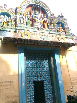 The main deity statue stands 9 feet tall, crafted from Kadu Sarkarai Yogam, a special mixture of stone and lime bound with sugar and mustard.