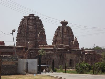 The Alampur Papanasi complex is a temple site comprising twenty-three structures built between the 9th and 11th centuries. The buildings feature square floor plans and the characteristic upward-rising towers of Nagara architectural style.