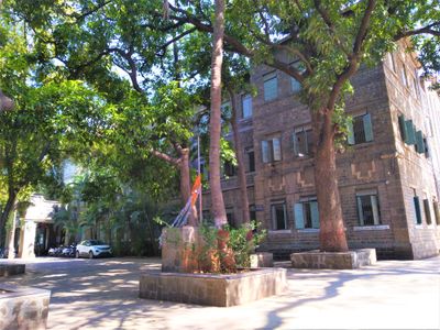 Bhave High School features colonial-era architecture with large verandahs, high ceilings, and spacious classrooms designed for natural ventilation and comfort in the tropical climate of Maharashtra.