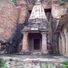 The temple structure, carved entirely from monolithic rock, includes a doorway decorated with figures of goddesses Ganga and Yamuna.