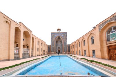 The geometric patterns and calligraphy visible on walls and vaults show traditional Persian artistic methods that visitors notice while walking through the space. These decorative details give the interior its visual richness and create a sense of careful craftsmanship throughout.