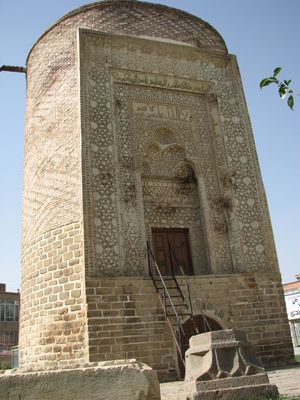Built in 1184 during the Seljuk Dynasty period, the tower features three stone inscriptions in Kufic script at its entrance marking the date Muharram 580.