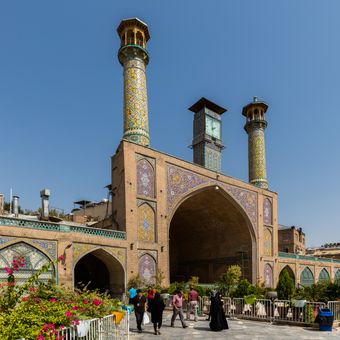 The mosque sits next to Tehran's Grand Bazaar and is easy to reach on foot. Visitors should wear modest clothing and be aware of regular prayer times when visiting.