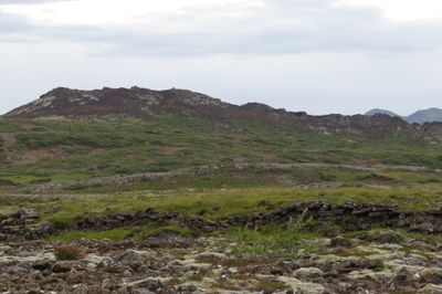 Búrfell crater rises 180 meters above sea level with dimensions of 140 meters in length and 60 meters in width near Hafnarfjörður.