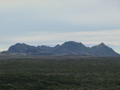 The Trölladyngja crater rises 378 meters above sea level, featuring a fissure vent within the Krýsuvík volcanic system of southern Iceland.