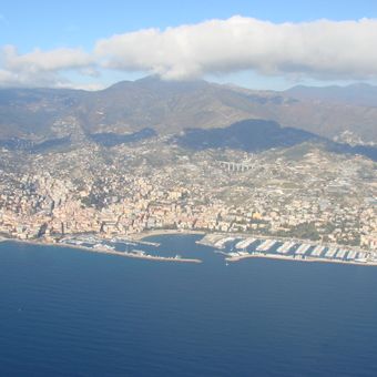 Sanremo is a city on the Ligurian coast in the Province of Imperia, around 20 kilometers from the French border. The old town center La Pigna sits on a hill above the harbor, while the newer districts extend along the coastal road to the east and west.