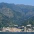 Cetara is a small coastal town on the Amalfi Coast that stretches from the Tyrrhenian Sea up toward Mount Falerio, with its center built right along the waterfront. The terrain is steep, with narrow streets winding between buildings and a harbor where fishing boats are moored.