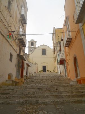 The city extends on a limestone promontory into the Tyrrhenian Sea, with beaches stretching along the Gulf of Gaeta near Naples.