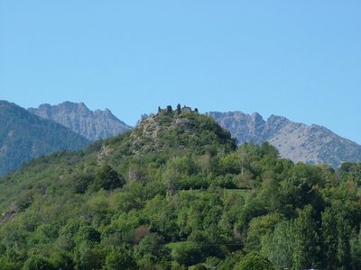 Château de Ville is a castle ruin perched on a rocky hilltop in Challand-Saint-Victor, overlooking the settlements of Nabian and Targnod. The complex still shows a central tower and wall remnants that reveal its former fortified structure.