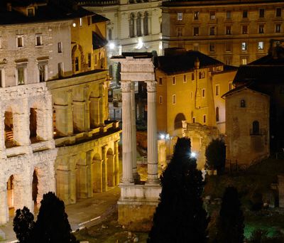 Visitors can observe the remaining temple structures near the Theatre of Marcellus, accessing the archaeological site through guided tours of ancient Rome.