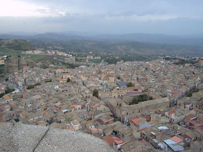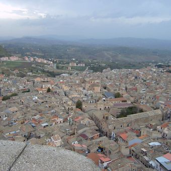 Corleone spreads across elevated terrain at 600 meters above sea level in western Sicily, surrounded by agricultural fields and mountain landscapes.
