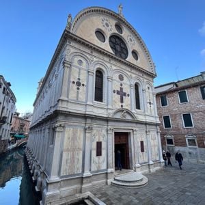 All four sides of the structure are visible to passersby, which is uncommon in Venice since most churches sit tightly against neighboring buildings. The facade directly faces a canal, giving the place an unusual presence in the urban fabric.