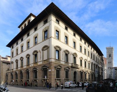 The structure emerged from merging several buildings in 1679, including the Cambini palace from 1458, the Carnesecchi palace from 1489, and the Gondi palace from 1496.
