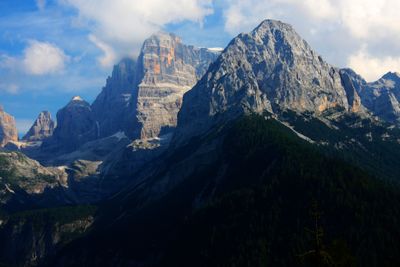 The Cima Tosa peak rises to 3,136 meters with a prominent north face overlooking Val Rendena and features a permanent snow cap on its rock surface.
