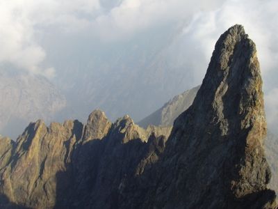 The south-west wall presents a vertical rise of 300 meters, while the north face extends to 500 meters, beginning at the Canalone di Lorousa.