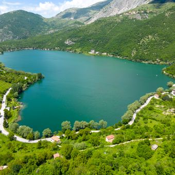A landslide from Mount Genzana blocked the Tasso River at the end of the last ice age, creating this natural water basin.