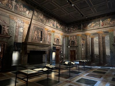 The Salone delle Prospettive contains illusionistic frescoes that create a panoramic view of sixteenth-century Rome through painted columns.