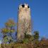 The circular keep of Treuenstein Castle stands 23 meters high and features a crown of three-meter-high merlons atop its stone structure.