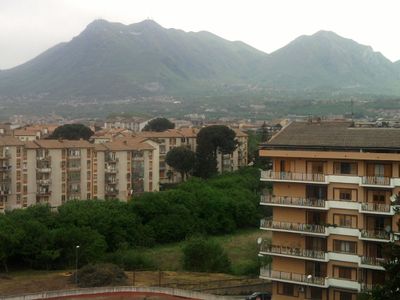 The Montevergine mountain rises to 1,493 meters above sea level, with slopes covered in chestnut and beech trees within the Campania region.