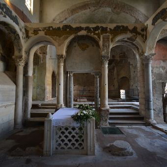The early Christian basilicas of Cimitile form an archaeological complex of at least thirteen sacred buildings from the early Christian period. The site displays remains of columns, arches, floor mosaics, and colored wall paintings that are over a thousand years old and spread across a large area.