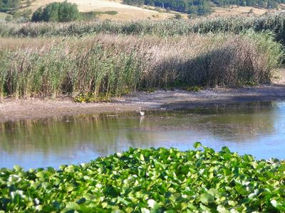 The park provides wooden walkways through marshy areas, informational signs, parking facilities, and designated paths for hiking and bird watching activities.