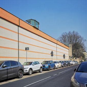 The structure consists of six three-story wings arranged in a radial pattern, following the panopticon design concept developed in the 18th century.