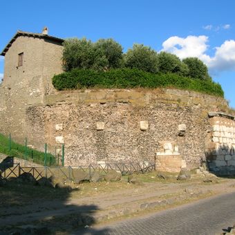 The circular mausoleum measures 35 meters in diameter and stands as the largest tomb structure along the ancient Appian Way road.