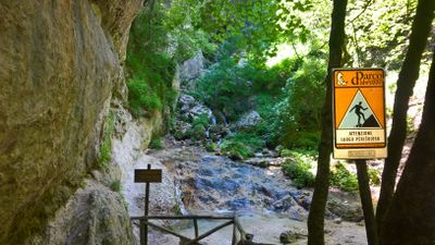 Visitors can access the waterfall through a marked trail from the main parking area on road SS83, west of Villetta Barrea in the Province of L'Aquila.