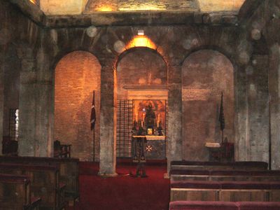 The chapel incorporates elements from an ancient Roman insula and structures from the Forum of Augustus into its foundation.