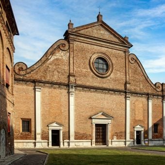 Construction of the basilica commenced in 1494 under the direction of architect Biagio Rossetti, marking a period of architectural transformation in Ferrara.
