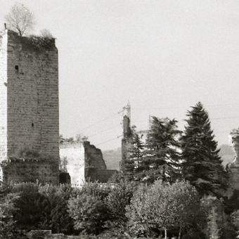 The Castle of Trezzo sull'Adda is a fortress standing on a hilltop within a bend of the Adda River, featuring a 42-meter-high tower and thick defensive walls. The five-sided layout and restored sections display the military construction style of Northern Italy.