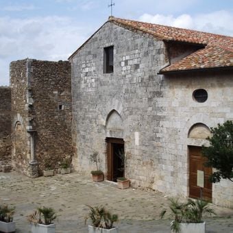 The Church of San Giorgio sits within the fortified walls of Montemerano, featuring Renaissance architecture and a collection of religious artworks from the 16th century.