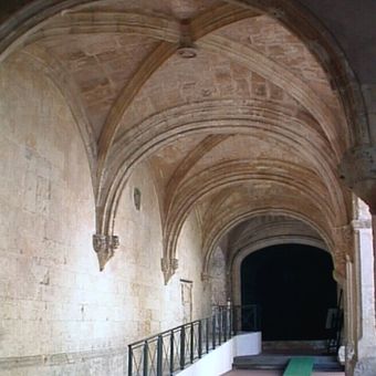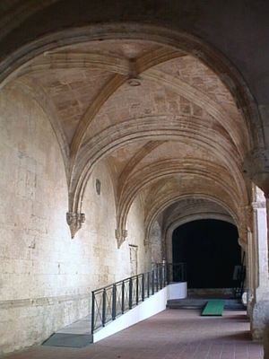 The west wing contains seven 15th-century chapels with ribbed vaults, decorated with plant motifs and animal figures on the carved capitals.