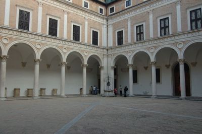Cortile di palazzo Ducale di Urbino, Renaissance courtyard in Urbino, Italy
